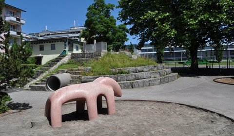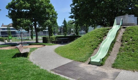 Der Spielplatz «Sternmatt» ist mitten in Baar und perfekt für einen schattigen Zwischenstopp. Der Platz bietet eine Menge für alle Altersklassen. Besonders spannend ist der Kletter-, Rutsch- und Kriechhügel in der Mitte des eingezäunten Platzes. Erkunde einen der vielen spannenden Wege, welche zum Aussichtspunkt auf den Hügel führen. Hinunter geht es dann rasant über die Rutschbahn. Aber auch für die Unterhaltung der Kleinen ist gesorgt. Eine Babyschaukel, ein Sandkasten und eine Wasserpumpe stehen zur Erkundung bereit. Wer lieber etwas Denksport betreibt, kann seinen Schulkameraden bei einer Partie Schach oder Mühlespiel herausfordern.