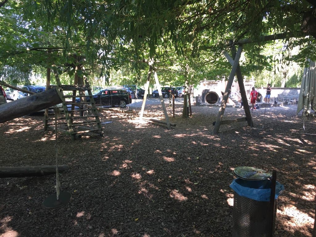 Draussen gibt es noch eine Terasse und Spielplatz für die Kinder