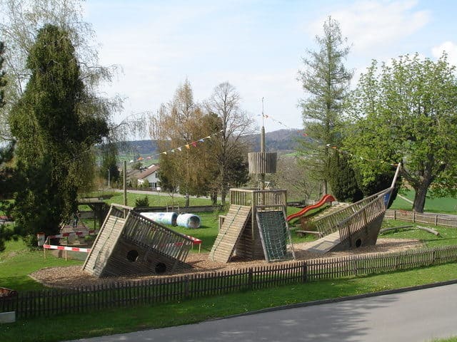 Ein sinkendes Schiff – klar zum Entern! Ein Traum für kleine Piraten! Auf dem Piratenspielplatz in Gontenschwil, lauern die Abenteuer. Neben einem Drehbaum, einer Seilbahn, Schaukeln und Rutschen, gibt es Piratenschätze, zum Entdecken für die Kleinen. Auch für die Eltern gibt es tolle Ruhe- und Sitzmöglichkeiten.