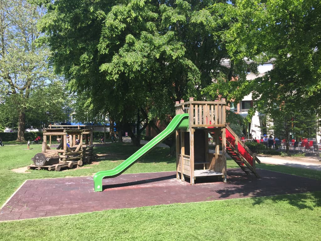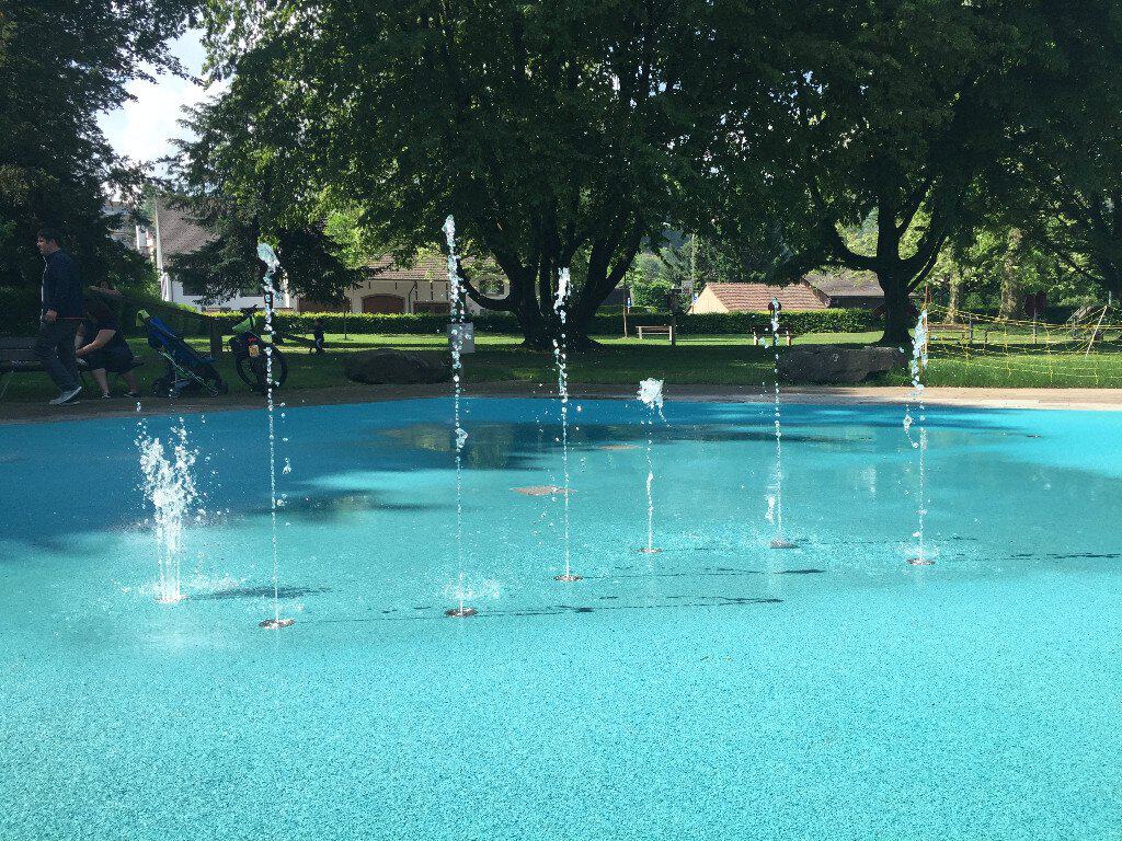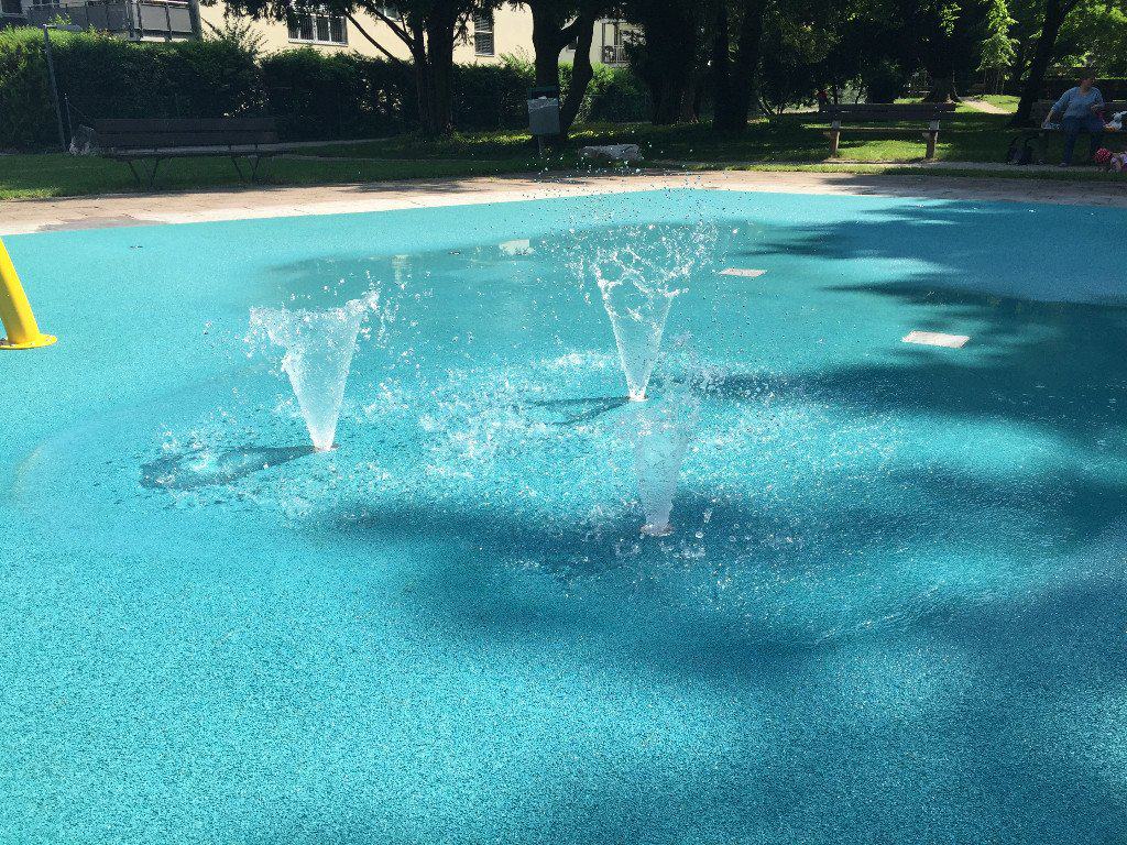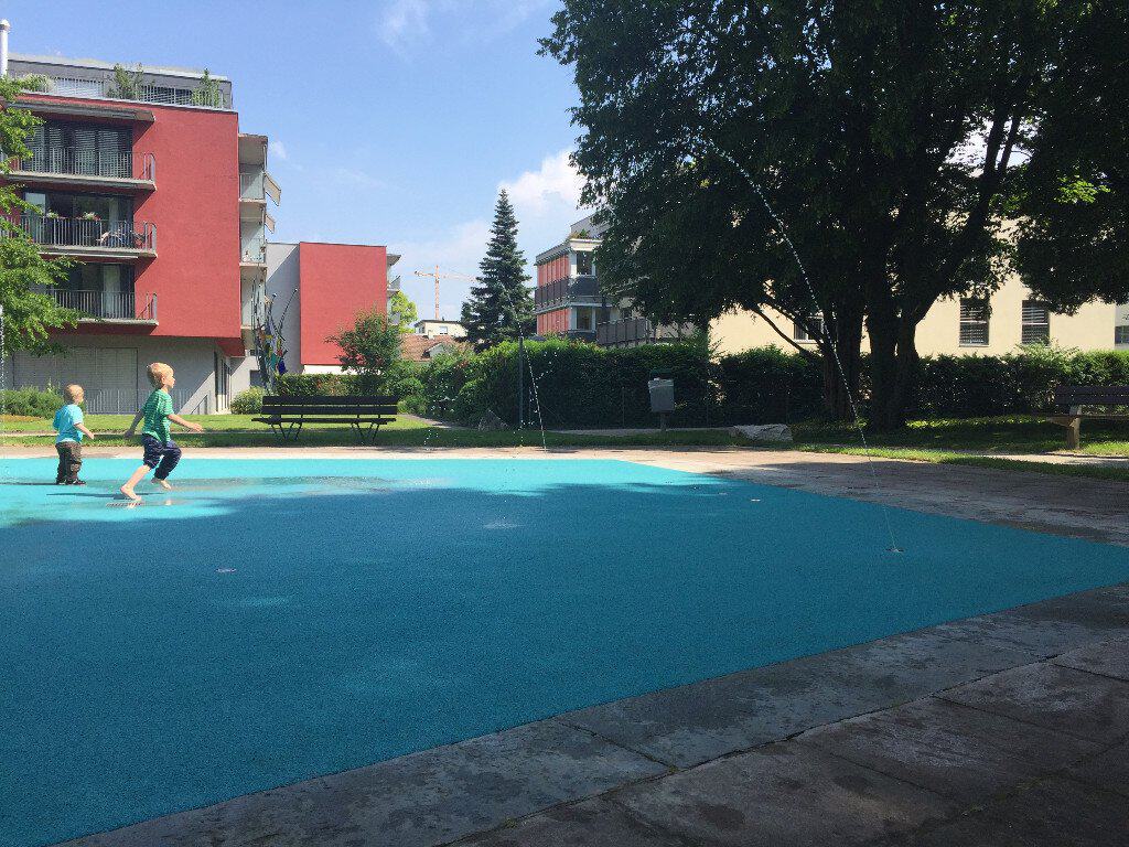 Der Jöripark hat neben grosser Wiese auch einen Sandkasten, Schaukel, grosse Holzeisenbahn zum verweilen, eine Rutsche und seit Sommer 2016 auch ein Wasserspiel.