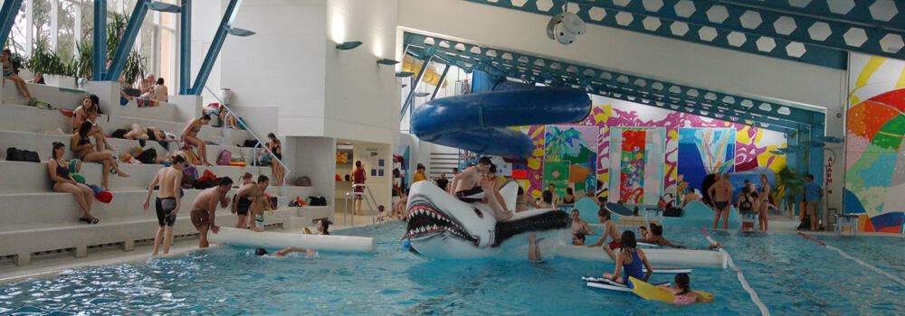 Das Hallenbad ist für unsere kleinen Nichtschwimmer mit einzigartigen Spielgeräten ausgestattet. Eine tolle 50 m lange Wasserrutschbahn oder ein grosser, gefährlicher Hai, laden alle Wasserratten zum Spielen ein. Und das bei einer angenehmen Wassertemperatur von 31° C.