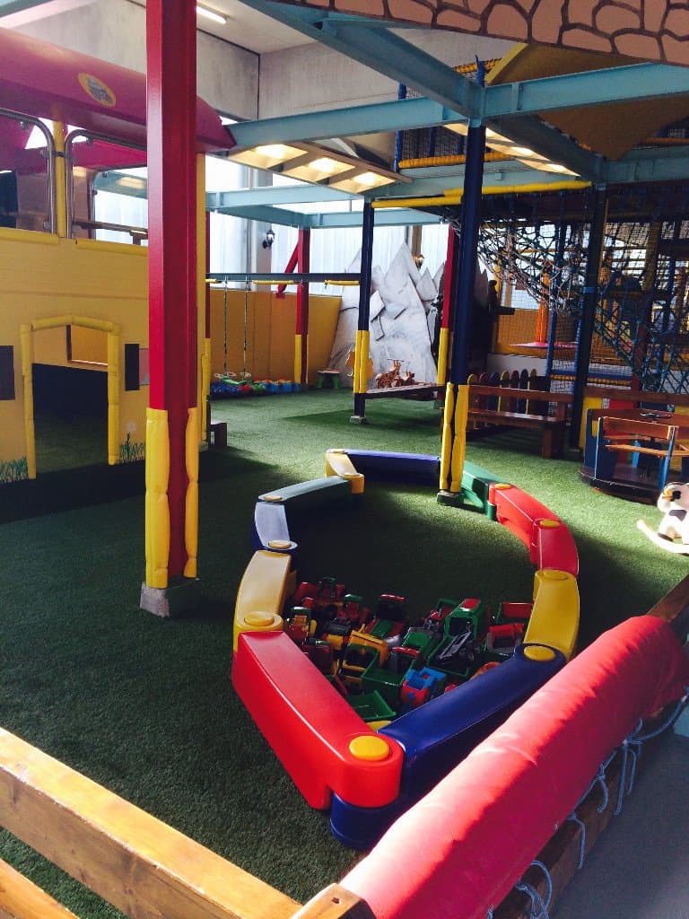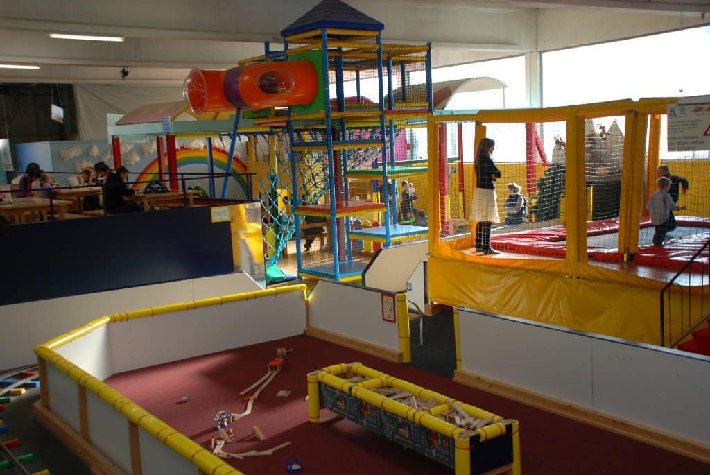 Dieser grosse Indoorspielplatz bietet sich nämlich vor allem zum Hüpfen und Klettern an. Aber auch Minikarts und Spielkonsolen für grössere Kinder finden sich dort.