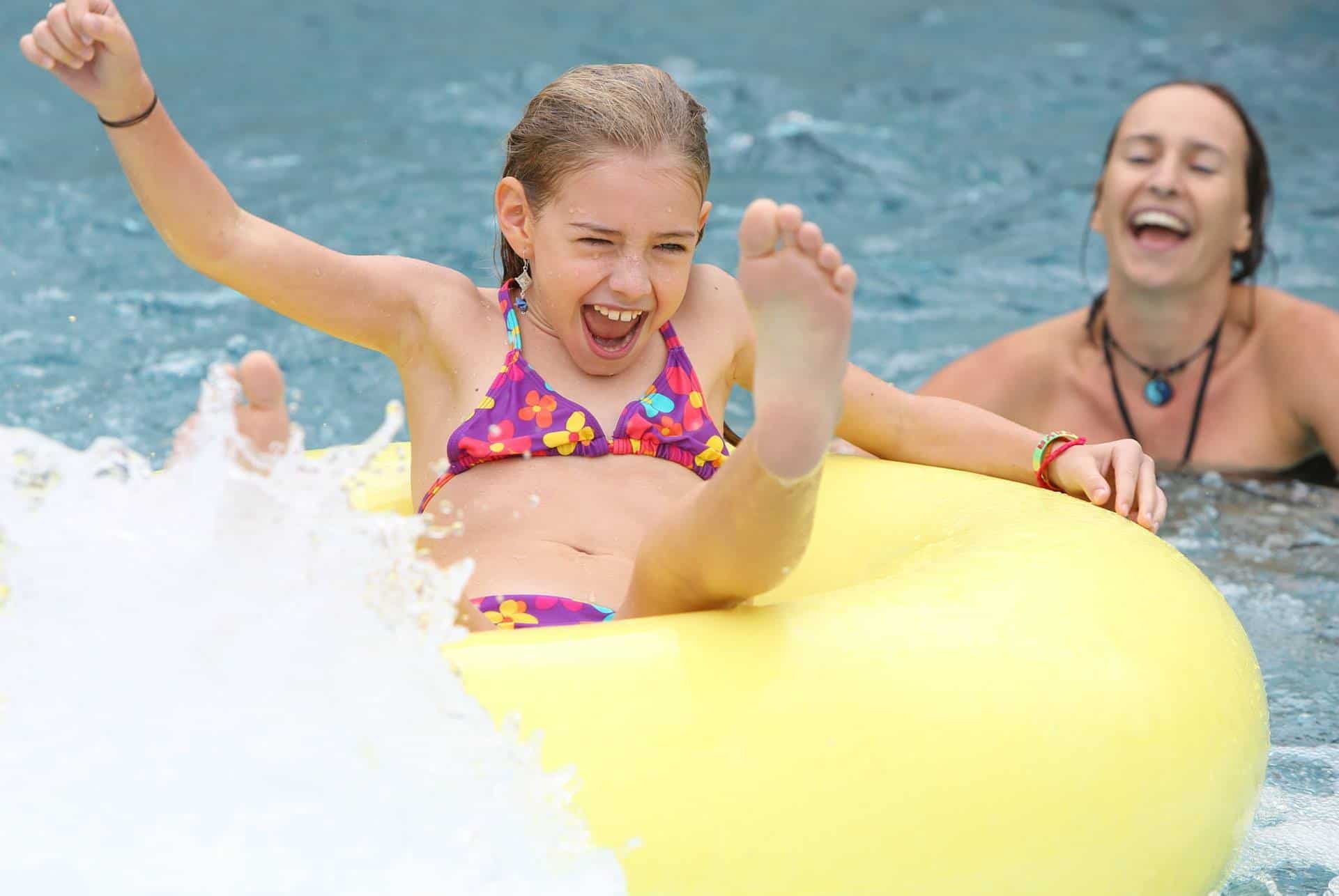 In einem separaten Spielbereich können Kleinkinder mit lustigen Wasserspielen und Rutschen spielen.