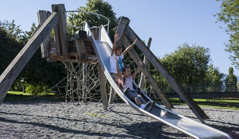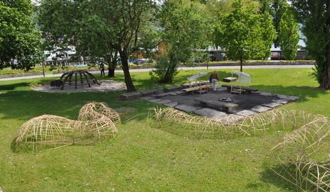 Der Spielplatz nahe am See und Badeanstalt bietet alles für kleine Abenteurer. Ein Attraktionspunkt überbietet den Anderen. Ob beim Stauen und Spielen am schilfverwachsenen Siehbach, beim Kriechen durch die Weidentunnels, beim Wasserpumpen und Windrad bestaunen oder beim Klettern und Rutschen, der Nachmittag ist bestimmt zu schnell vorbei. Die Feuerstellen und Sitzgelegenheiten runden das Angebot ab. Die Lage des Spielplatzes ist optimal. Kein Verkehr, aber trotzdem gut mit den öffentlichen Verkehrsmitteln erreichbar, direkt am See und einer Badeanstalt, wie auch neben einer grossen Rasenfläche, welche sich zum Fussball oder Frisbee spielen eignet.